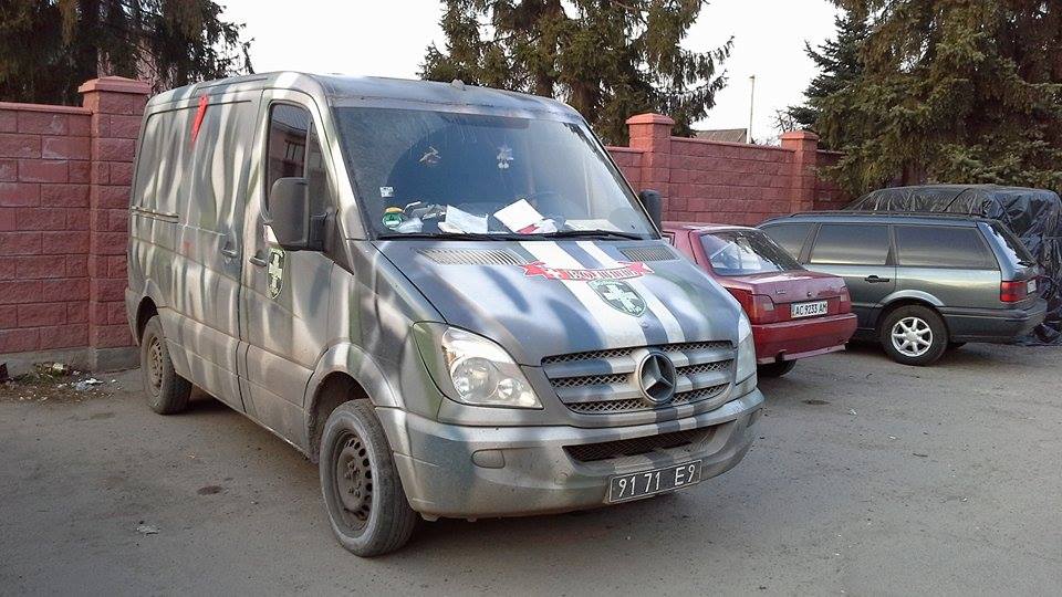 А на вулиці Мамсурова, на майданчику біля райвідділу міліції, 21 березня, коли Юрій приїздив на опізнання, стояв автомобіль «Мерседес», на якому наклеєна символіка 1 батальйону територіальної оброни «Волинь», і який упізнав Юрій. Саме там і зроблене фото: