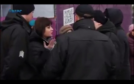Журналістку телеканалу «Аверс», яка висвітлювала мітинг президента Петра Порошенка поліцейські затримали та силою вивели з мітингу. На ролику, розміщеному в мережі, видно, як жінку з камерою і бейджом журналіста на шиї силою виводять з площі.