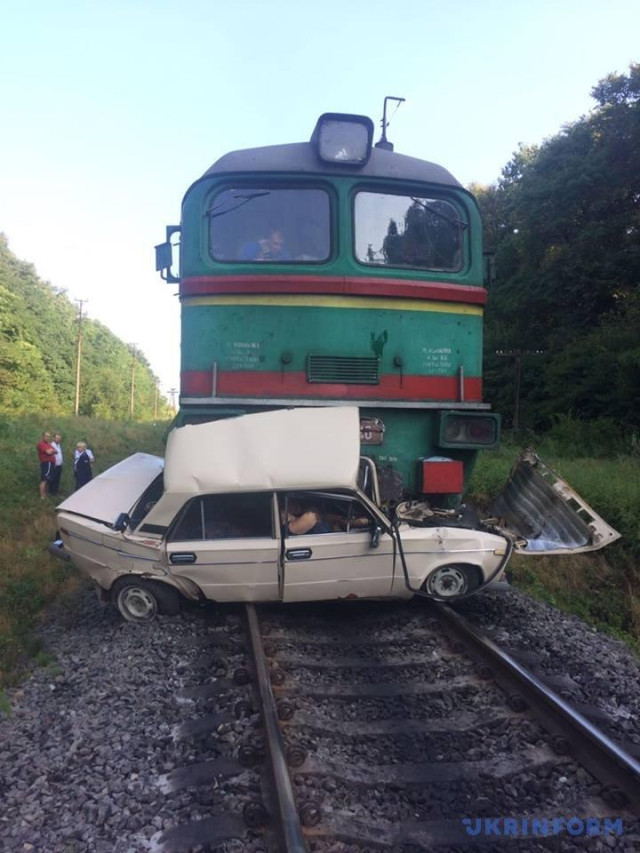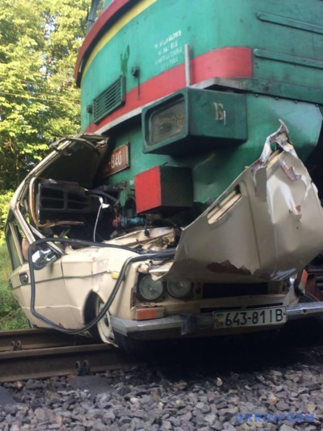 "Машиністи говорять, що у момент наїзду поїзда автомобіль стяв на переїзді і не рухався. Після зіткнення поїзд протягнув автомобіль близько кілометра", - наголосив очевидець.