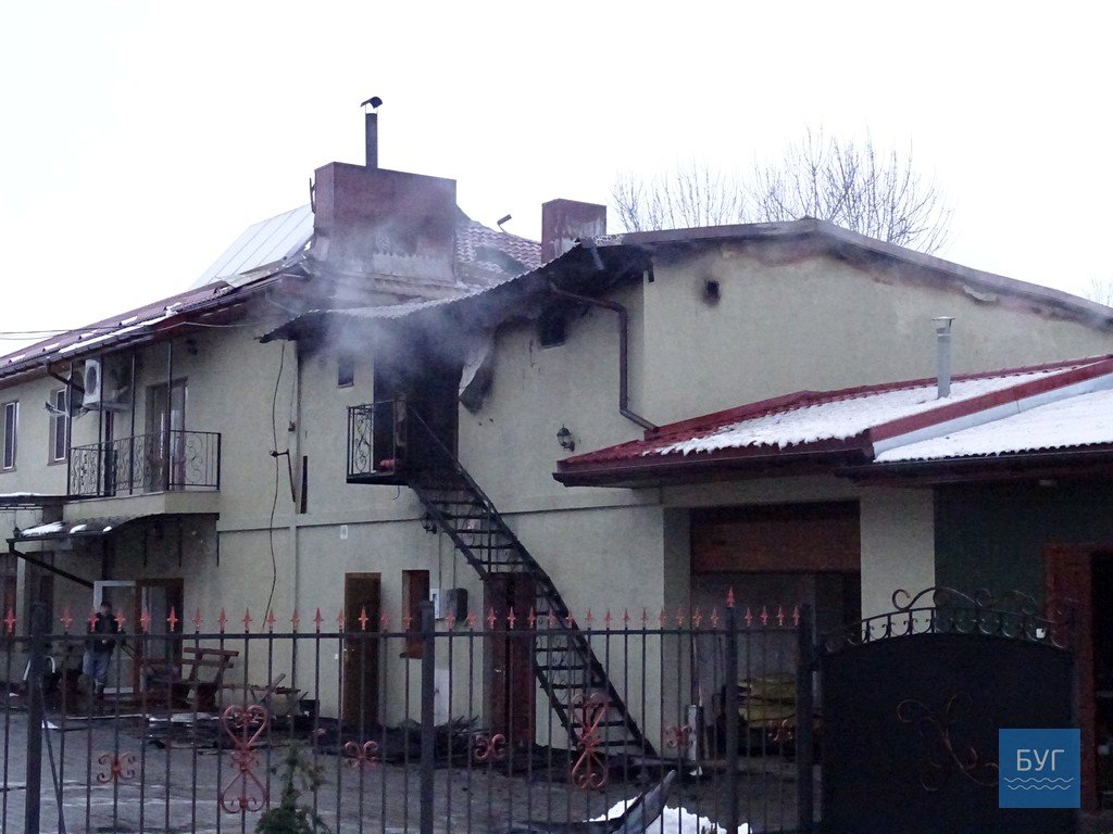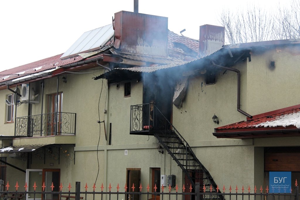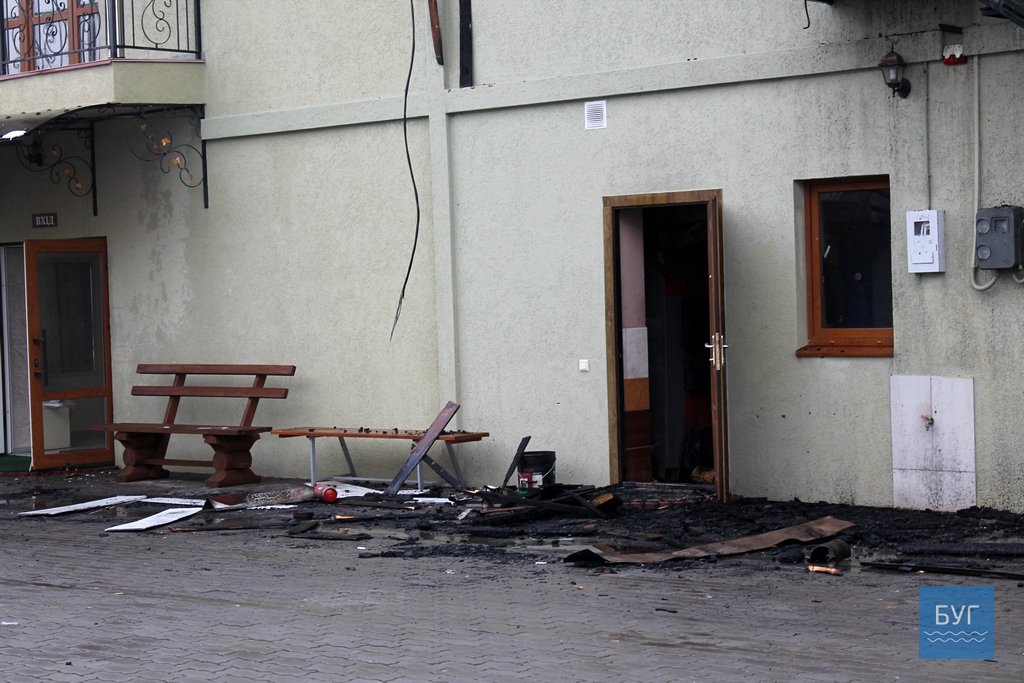 Зі слів підприємця, горіло приміщення, де проживає він сам. З його слів, хоч частина будівлі, де трапилася пожежа, знаходиться на території комплексу, вона не надається у користування клієнтів.