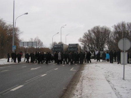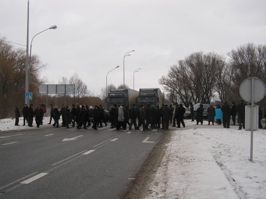 Орієнтовно сотня працівників «Волиньторфу» перекрила міжнародну трасу Київ-Ковель-Ягодин поблизу маневицького посту ДАІ.
