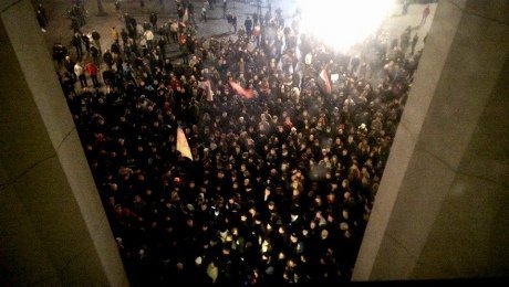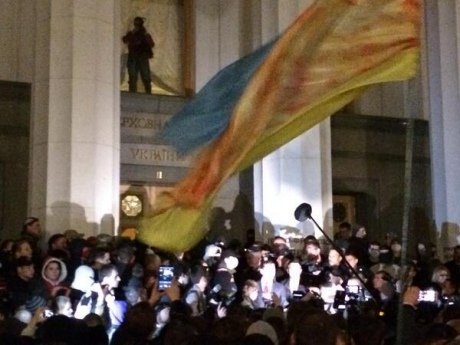 Під стіни парламентом прийшло близько 2 тисяч людей. Вони принесли шини, стукають по дверях парламенту, розбивають скло на дверях. Окрім того, активісти кричать "Революція", вимагають відставки глави МВС Авакова та відправити під трибунал екс-міністра оборони Тенюха.