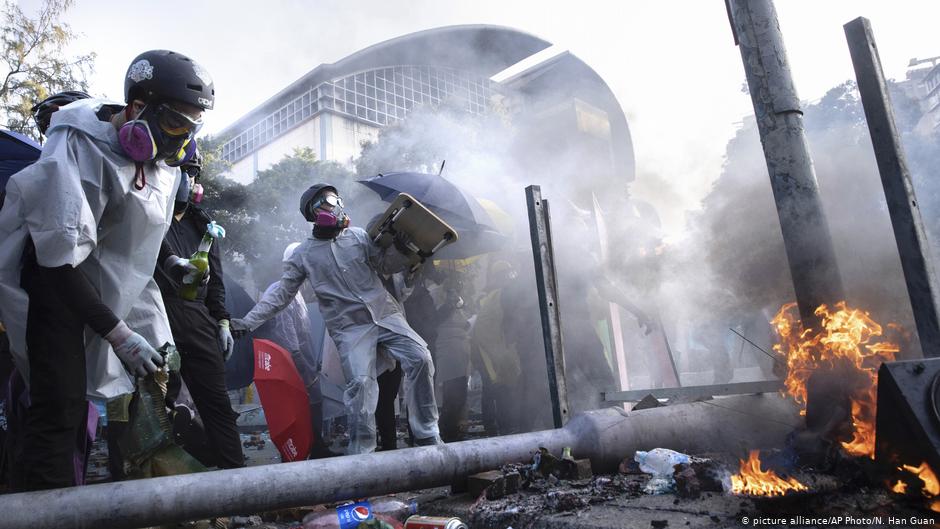 Раніше у Гонконгу траплялися поодинокі випадки застосування вогнепальної зброї. 11 листопада один з поліцейських поранив демонстранта в грудну клітину, вистріливши з пістолета. Зазвичай сили безпеки використовували для розгону мітингарів сльозогінний газ та водомети.