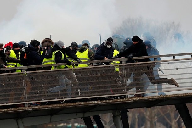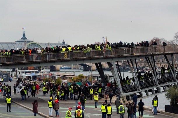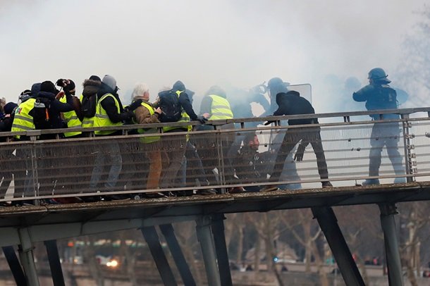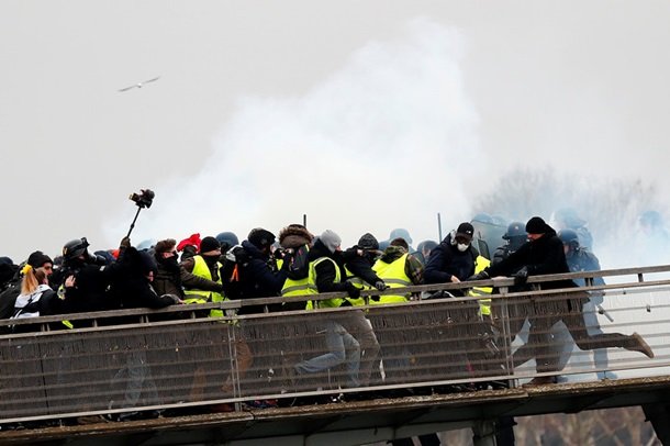 У відповідь правоохоронці застосували сльозогінний газ проти учасників протесту, які намагалися перетнути міст через Сену. В результаті заворушень було підпалено річковий ресторан.Нагадаємо, у Франції з початку листопада тривають протести "жовтих жилетів". Наймасштабніші акції відбулись у Парижі 1 та 8 грудня. На тлі протестів президент Франції Еммануель Макрон пообіцяв скасувати підвищення податків для бідних і малозабезпечених пенсіонерів. Рейтинг французького лідера почав стрімко падати на тлі протестів. За словами французького міністра фінансів Бруно Ле Мера, протести «жовтих жилетів» обернулися для економіки Франції катастрофою.