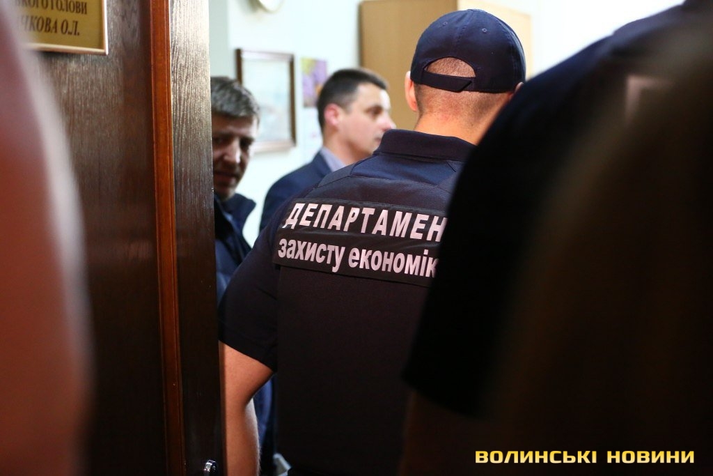 Нагадаємо, після завершення сесійного засідання, яке відбулося 25 квітня, працівники Департаменту захисту економіки Національної поліції України без жодних пояснень і коментарів пройшли в кабінет Олександра Рачкова і деякий час нікого туди не пускали.