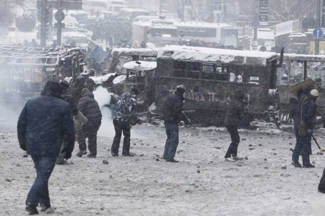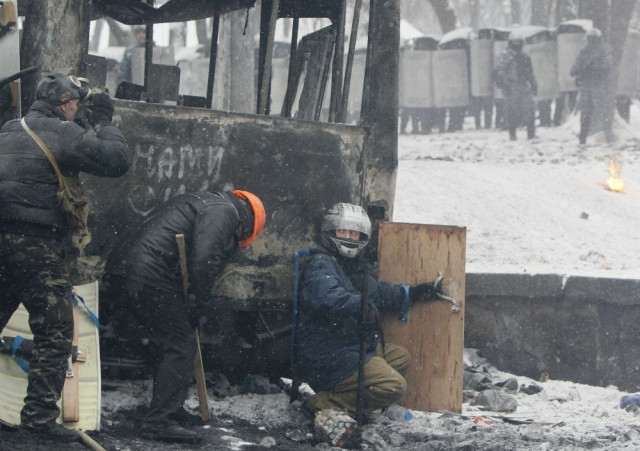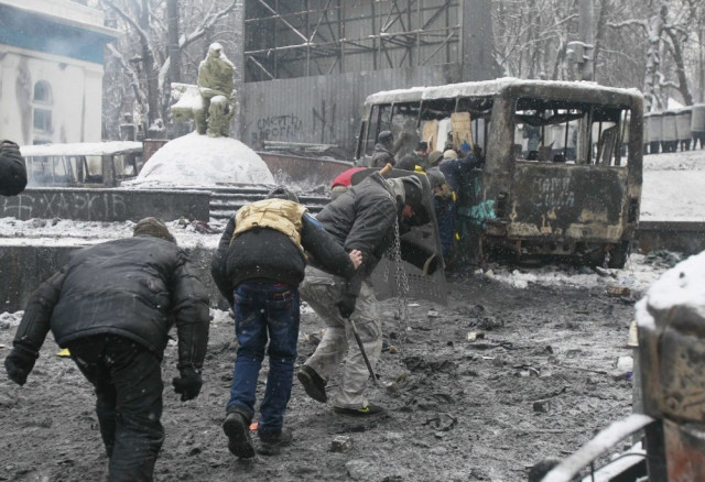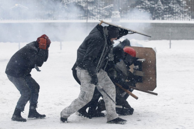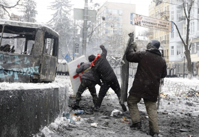 Говориться про двох загиблих під час ранкових сутичок з числа активістів. Їх, буцімто, застрелили.