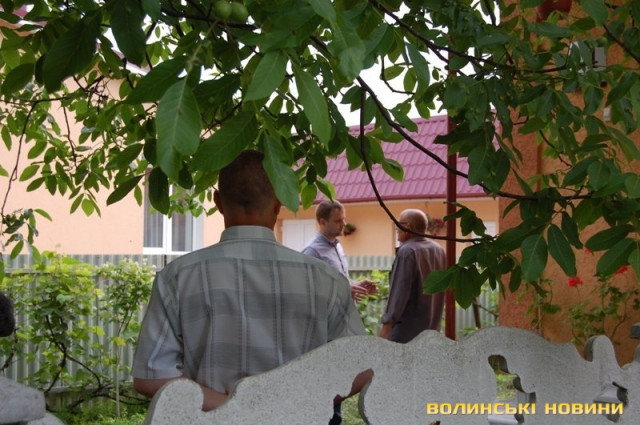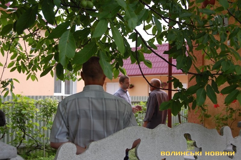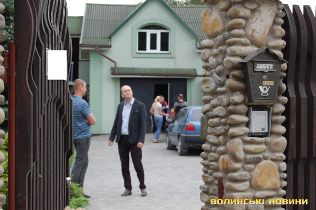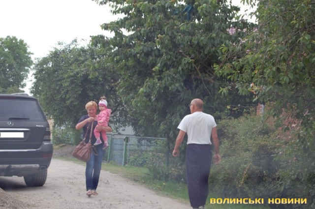 На огляд сусідської ділянки, яка впирається в паркан «підозрілого будинку», працівник органів пішов разом з дружиною підозрюваного. Звідти жінка повернулася до свого дому, тримаючи в руках під футболкою невідомий еліпсоподібний предмет.Після цього, ймовірно родичі підозрюваного забрали з будинку маленьку дитину. Зі слів сусідів, подружжя має двох маленьких діток віком до двох років.Як розповіли випадкові перехожі, господар будинку - з родини медиків. «Мати в нього була в нас завідувачем медпункту. Батько працював ветеринаром, а нині десь в Луцьку керує ринком. Хороший хлопець, дорогу нам тут проклав. А чим займається, Бог його знає, така в нас нині молодь», - розповідає мешканка села.