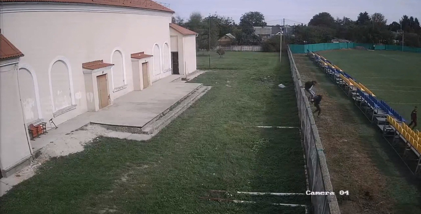 На відео, яке триває більше 10 хвилин видно як молоді люди спочатку курять під стінами стадіону, потому справляють природні потреби під стінами місцевого Будинку культури, долають паркан та знову «спорожняються» вже під трибунами стадіону.