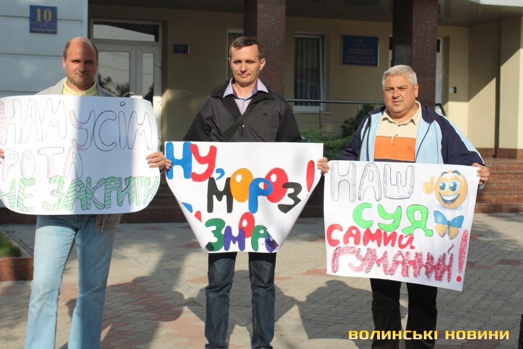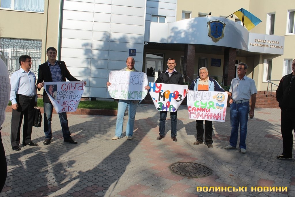 Напередодні судового засідання прибічники Ольги Нечитайло влаштували пікет з плакатами під стінами Апеляційного суду Волинської області. Вони закликали до справедливості.Нагадаємо, що на одному із віч у Володимирі-Волинському Ольга під час виступу розкритикувала молодіжно-розважальний центр «Метелик», назвавши «розсадником бандитизму, наркоманії, підпільного ігрового бізнесу, алкоголізму неповнолітніх». З її слів, у закладі відбуваються постійні бійки, там регулярно розпивають спиртні напої неповнолітні. Власником закладу є одіозний Руслан Мороз.