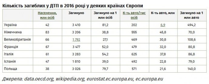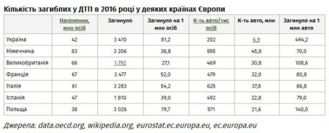Проте навіть за офіційною статистикою безпека дорожнього руху в Україні низька порівняно з країнами ЄС.