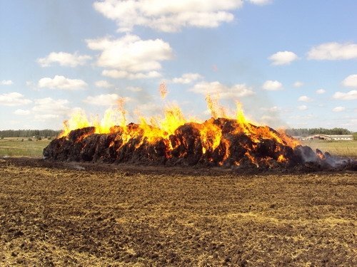 А затим, о 18.03, вже палали два стіжка соломи (разом 4 тонн), які належали іншому власнику. Щоправда, тут вогонь загасили підручними засобами до приїзду пожежників.