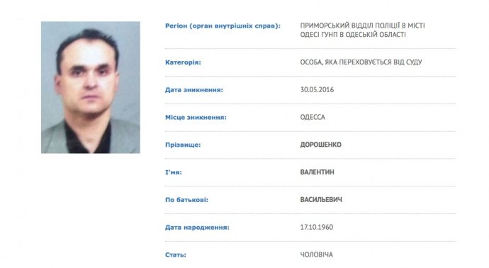Він досі перебуває у розшуку на сайті МВС.