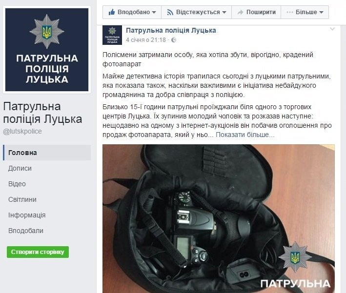 Нагадаємо, 4-го січня прес-служба патрульної поліції на своїй сторінці у Facebook повідомила про детективну історію, де людина, у якої ймовірно вкрали фотоапарат, змогла знайти втрачене майно.