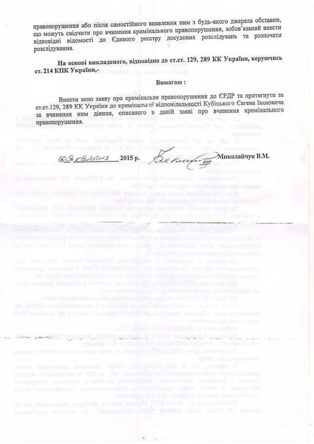Інформаційне агентство Волинські Новини отримало копію заяви власника транспортного засобу, який викрав Кубіцький-молодший.