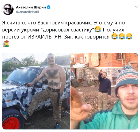 Фотографії Васяновича, на тілі якого видно татуювання з нацистською символікою, виявив в підсобці польський журналіст. Про це розповів блогер Анатолій Шарій.