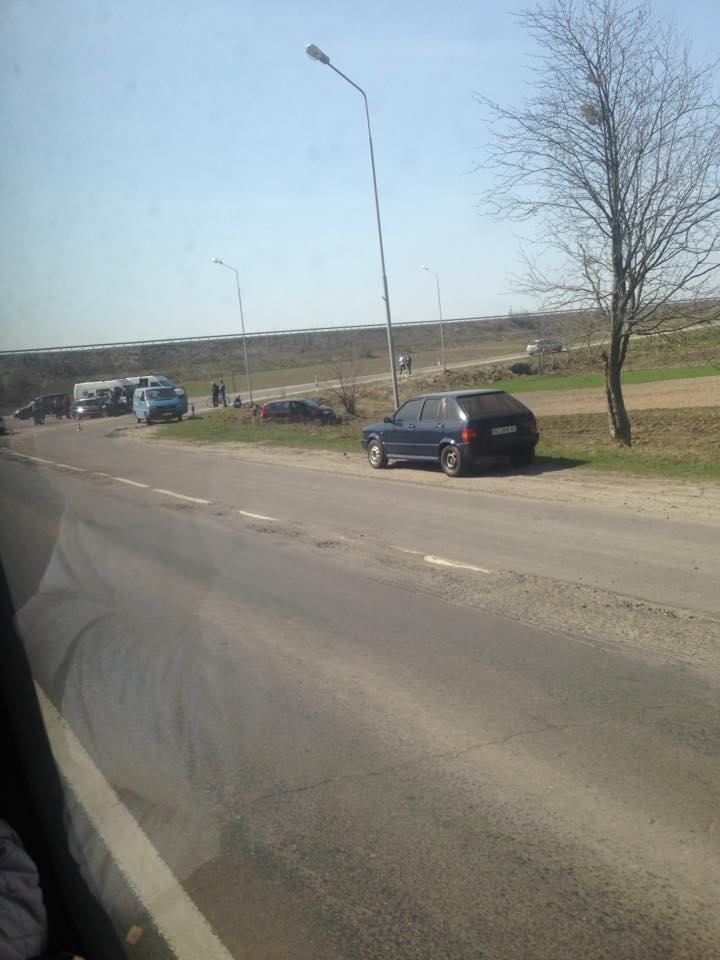 Як видно на світлинах, одне авто злетіло у кювет, інші два стоять на дорозі. На місці події працюють дві "швидких".