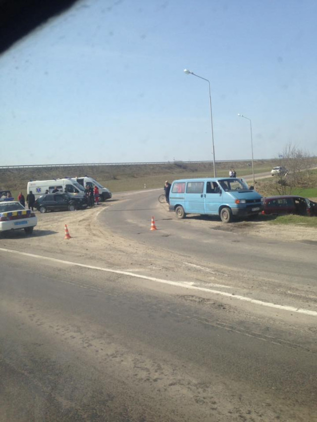Зокрема, на повороті не розминулись мікроавтобус, мінівен та легковик.