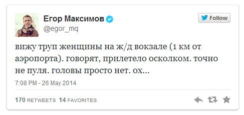 Водночас журналіст телеканалу "Дождь" Єгор Максимов повдіомив, що поряд іх вокзалом бачить тіло загиблої жінки.