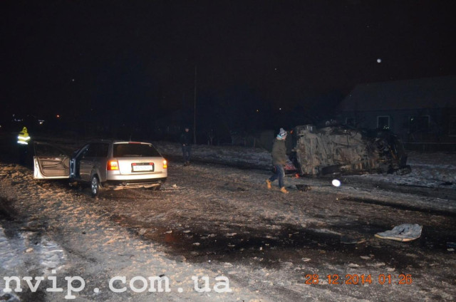 Я там був і все бачив.Водій Ауді виїхав на зустрічну смугу руху і за попередньою інформацією був в стані алкогольного сп'яніння 2,5 проміль,тоді як смертельна доза 3 .Пішехода ніякого не було.Водії та пасажири двох машин майже не постраждали.
