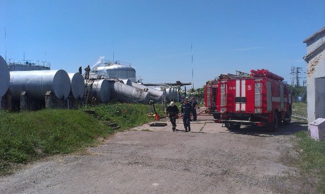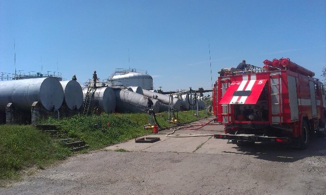 На охолодження резервуарів та запобігання загоряння подавалося 2 повітряно-пінних стволи та 7 водяних стволів.