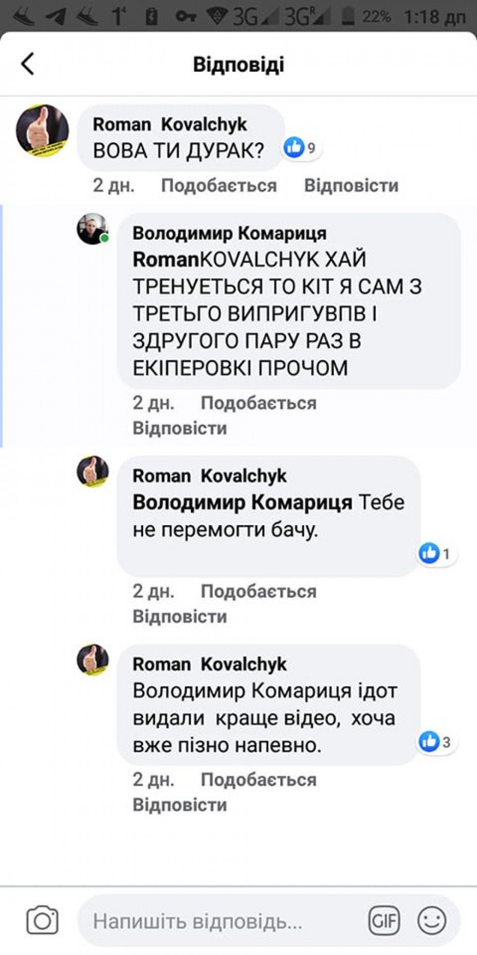 В нас крадуть ліс, херня. В нас будують де захочуть, херня. В нас маскі по 20 грн, теж херня. А от ми принизили людину, ура!!! Так він же не вбив кота? Херня. А ви спитали його чому він так поводився з цією твариною? Ні бо можливо прийшлося б допомогти йому а не котові, а нам потрібен ПІАР. Слава нам слава, а Вова? А х..р з ним, ми рятуємо тварин а не людей!!!