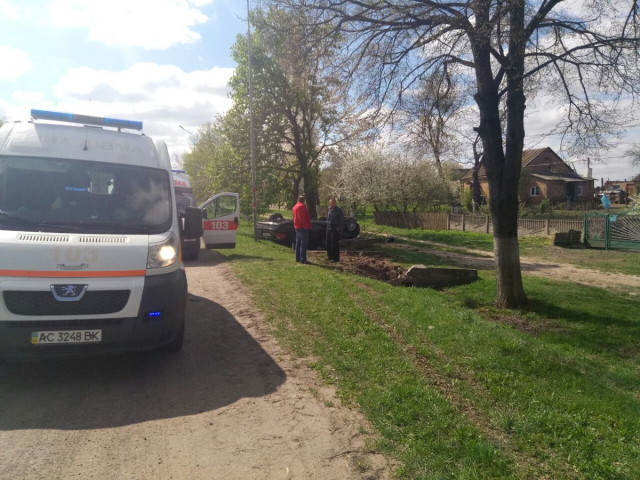 Автомобіль Mercedes-Benz злетів з дороги і перекинувся на трасі Луцьк-Ковель у селі Княгининок.