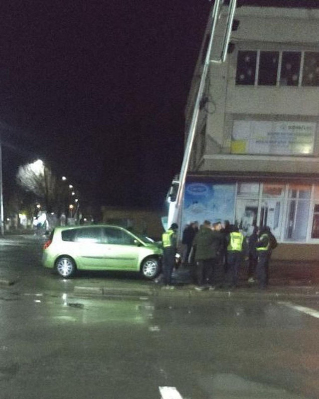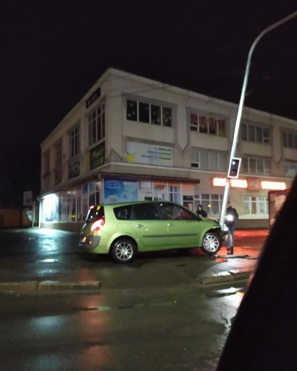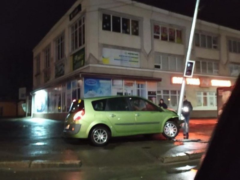 Так, біля «Універмагу» водій за кермом легковика в'їхав в опору ліхтаря зі світлофором.
