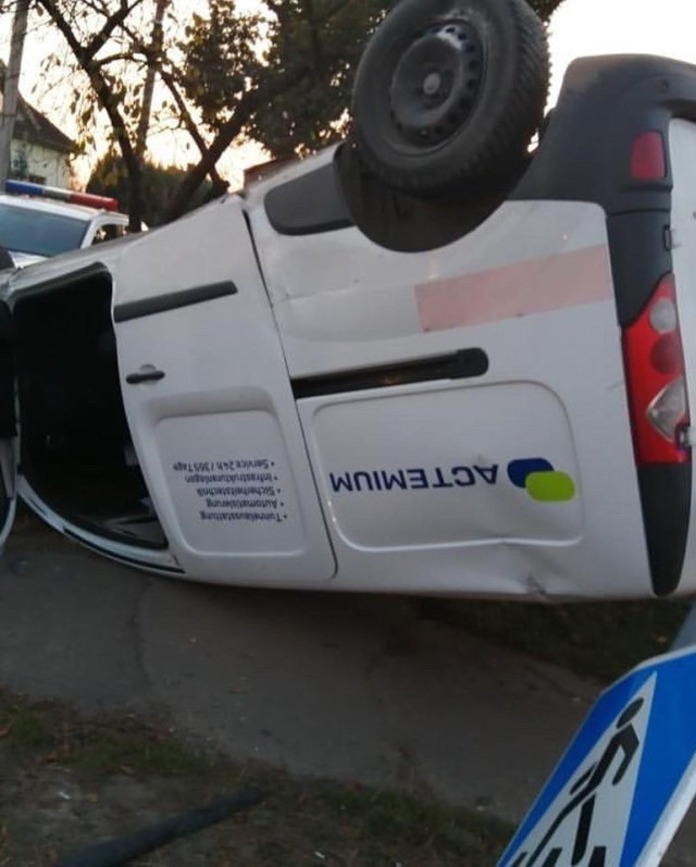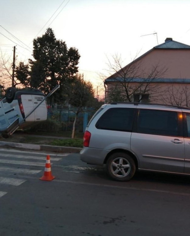 Від удару мінівен відкинуло на узбіччя, де він перекинувся на дах.
