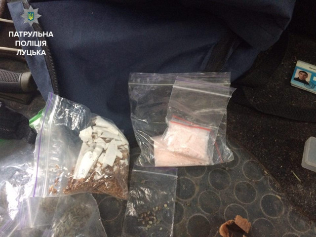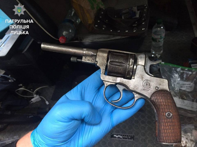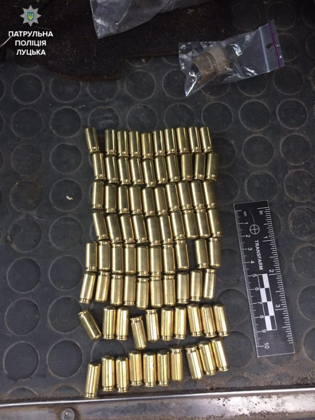 При перевірці в багажнику виявили предмет, схожий на револьвер «наган», а також предмети, схожі на тротилову шашку, детонатори та порох, були тут і предмети, які могли використовуватись для куріння наркотичних речовин, повідомляють у патрульній поліції Луцька.