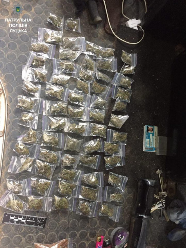 Окрім згаданих предметів, з автомобіля вилучили понад 60 пакетиків з невідомою речовиною, схожою на канабіс, та кілька десятків патронів з резиновими кулями.