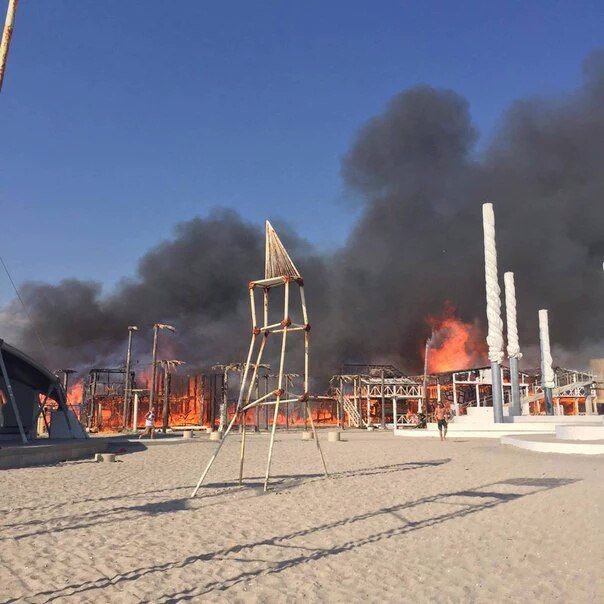 Пожежа спалахнула у неділю, 17 липня, на пляжі в селі Поповка на заході Криму, де до анексії півострова Росією щорічно влітку проводився танцювальний проект «КаZантип».