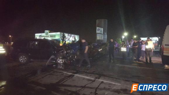 За кермом автомобіля Toyota Land Cruiser, за участю якого сталася масштабна ДТП, виявився депутат Макарівської районної ради Київської області від партії "ВО "Батьківщина" 27-річний Матвій Євсеєнко. Про це написав на своїй сторінці у Facebook активіст Роман Синіцин.