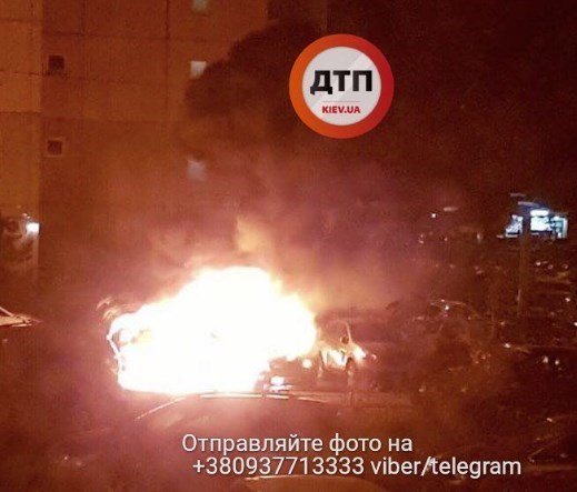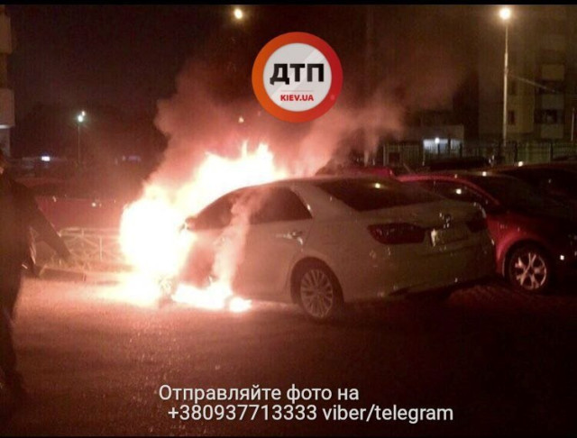 "На Позняках у дворі будинку по вулиці Анни Ахматової горить автомобіль Toyota Camry білого кольору, з номерами МВС України", - написав він.