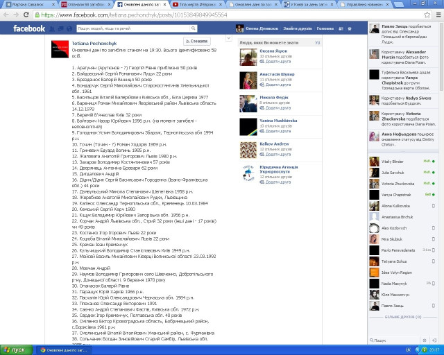 Списки із іменами загиблих оприлюднила на власній сторінці у соцмережах активістка Тетяна Печончик.