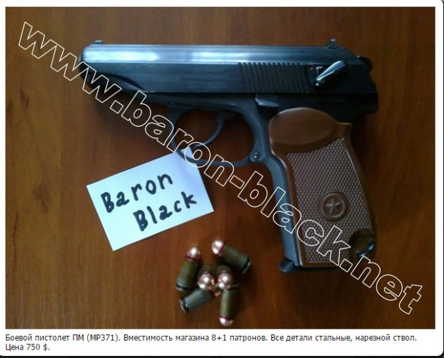 На сайті такого собі Baron Black є, як травматична, так і вогнепальна зброя. Найдорожчий «ствол» - пістолет Макарова, який коштує 750 доларів (близько 20 тисяч гривень).