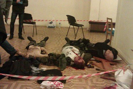 На фото: загиблі протестувальники в Будинку офіцерів