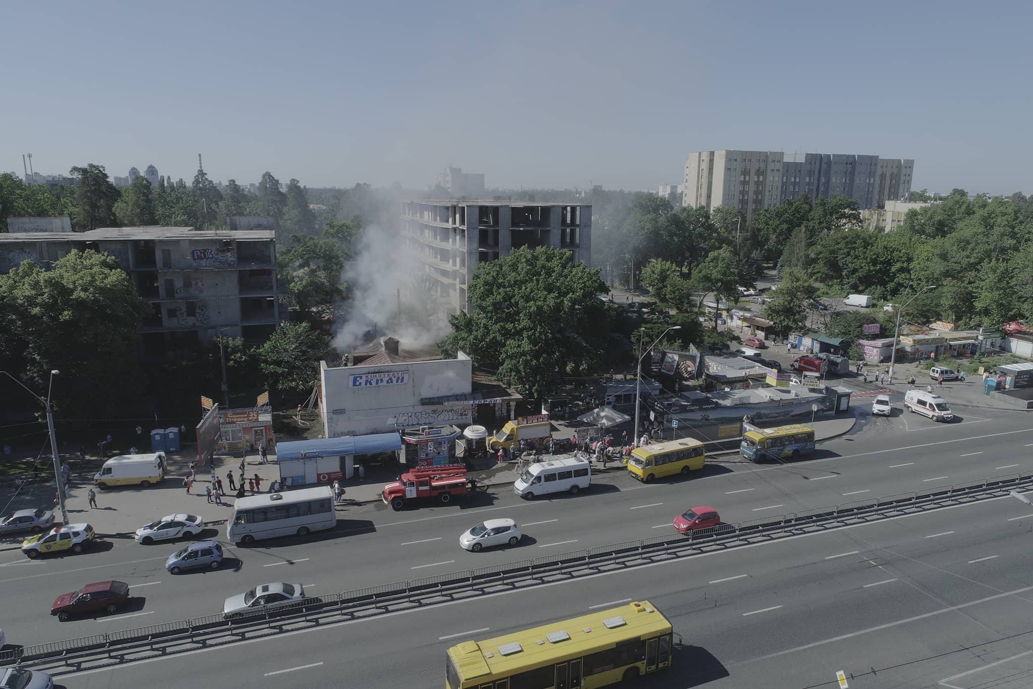 У понеділок, 28 травня, у Києві спалахнула пожежа у будівлі колишнього кінотеатру "Екран", що розташований біля метро "Житомирська" за адресою проспект Перемоги, 177. Чорний та густий дим затягнув усе небо.