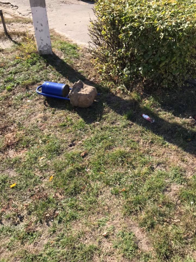 «Сьогодні вночі на Незалежності, біля дитячого майданчика, якась «непотріб» поламала дорожні знаки, лавочки,повиривала ЗАБЕТОНОВані сміттєві урни, перевернули бетонні квітники...» - пише голова ОТГ.