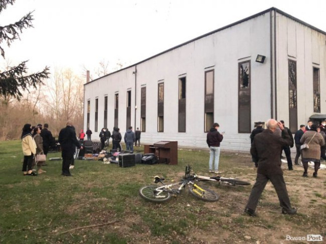 Із церкви викидають меблі та інші речі, аби врятувати їх від вогню.