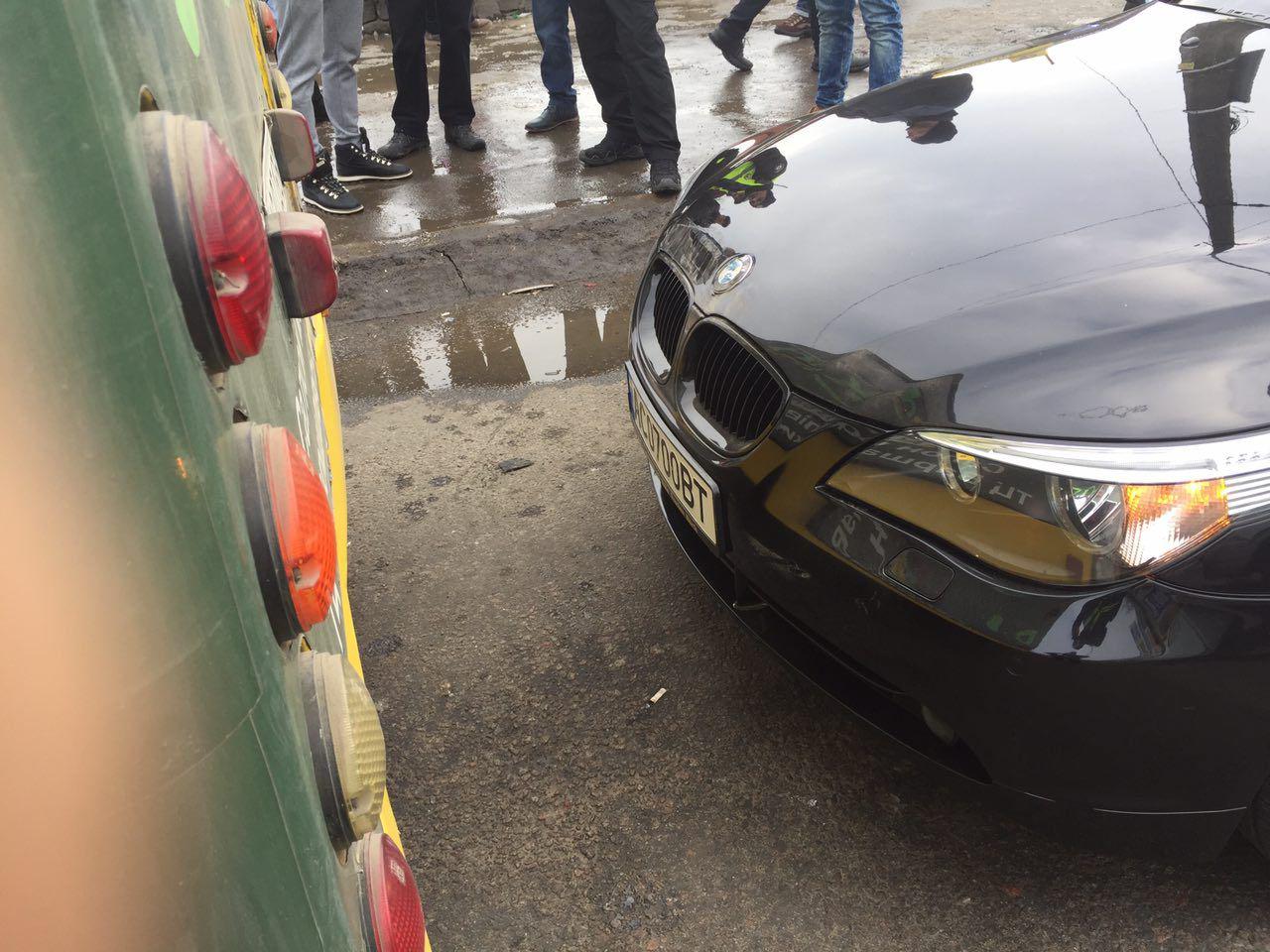 Легковик та автобус отримали незначні механічні ушкодження. Відео наслідків ДТП опублікував в соцмережі користувач Vadja Likhatskiy.
