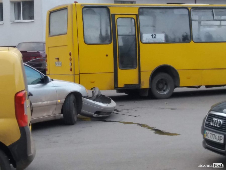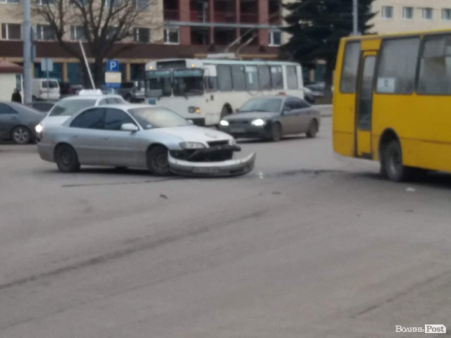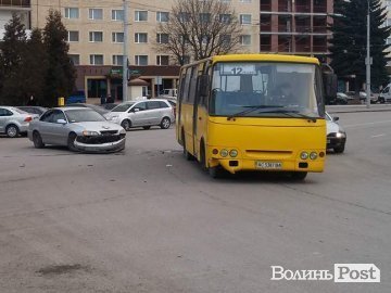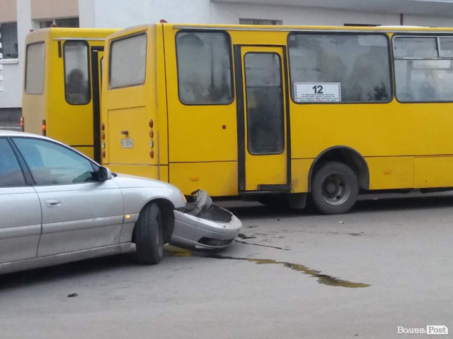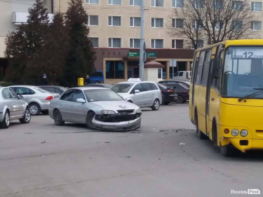 Аварія за участю маршрутки та легковика Opel трапилася в Луцьку поблизу облмуздрамтеатру.