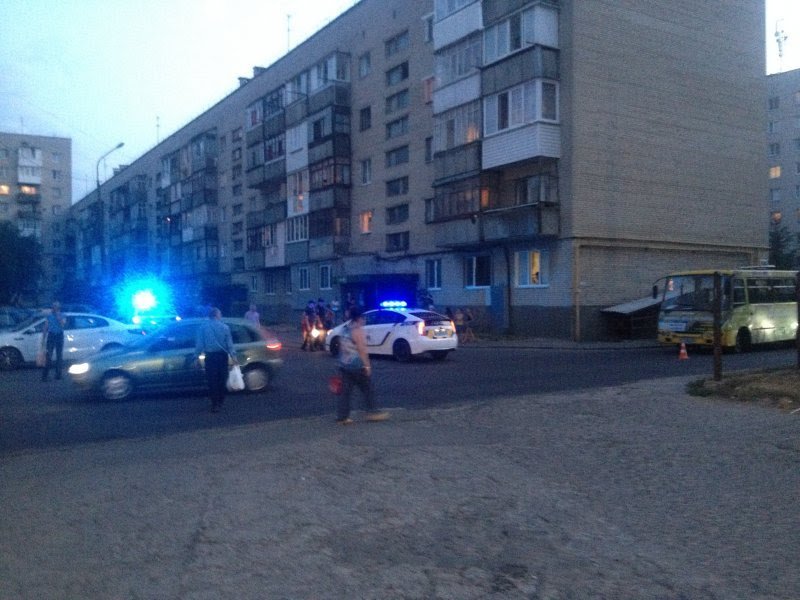 Хлопчик на велосипеді вирішив виїхати на проїзну, не звернувши увагу, що нею рухається маршрутка. Сталося зіткнення. Автобус їхав повільно, тому дитина залишилася неушкоджена, відбувшись переляком.