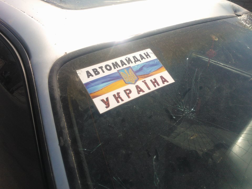 На лобовому склі автівки марки «Opel» приклеєна наліпка «Автомайдан Україна».