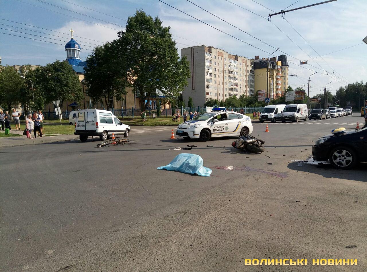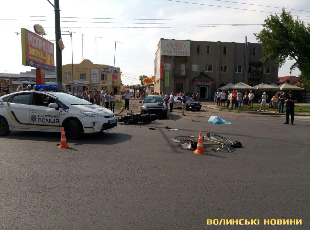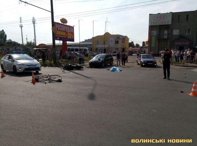 У Луцьку на вулиці Конякіна, біля колишнього супермаркету «Агроконтракт», що недалеко від «риббази», трапилася смертельна аварія за участю автівки, мотоцикліста та велосипедиста. ДТП сталася сьогодні, 20 липня, близько 16:30.