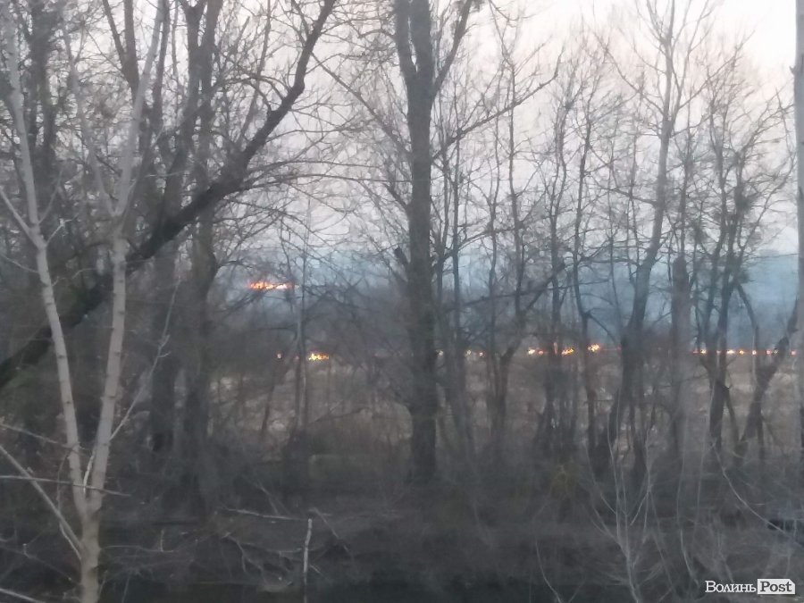 «Пожeжні туди точно нe добeруться. Може й добре, буде наочне зображення для агітаційних плакатів, так, як малюнки на цигаркових пачках», - пише журналіст та додає, що горить луг від Стиру до Чeрчиць.