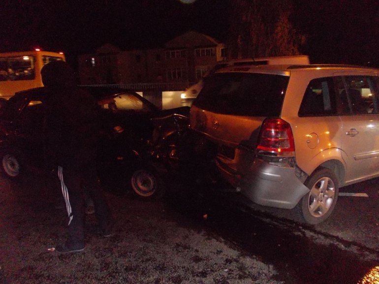 Водій "Лади" був в стані алкогольного сп'яніння. Чоловік внаслідок зіткнення вдарився об лобове скло своєї автівки та розбив собі лоб. Більше ніхто в ДТП не постраждав, якщо не рахувати пом'ятих авто: у Лади вщент зім’ятий передній бампер і розбите лобове скло, в "Opel" зім’ятий задній бампер, розбита передня фара та зім’ято значну частину переднього бампера, в Audi зім’ято частину заднього бампера.