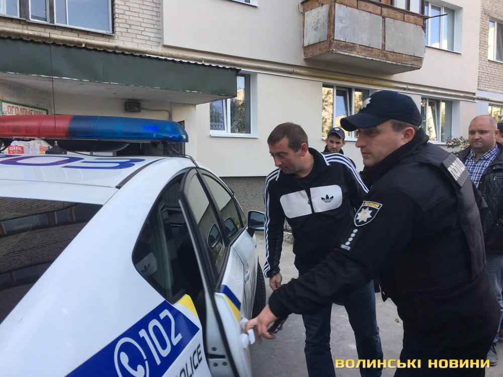 Як розповів у коментарі ІА Волиньскі Новини начальник міськвідділу поліції Олег Кічук, який був присутнім на місці інциденту, чоловік перебував у стані алкогольного сп’яніння. Затримати чоловіка вдалося на балконі власної квартири, куди він тікав від правоохоронців. При затриманні він отримав незначні ушкодження, порізи від скла.