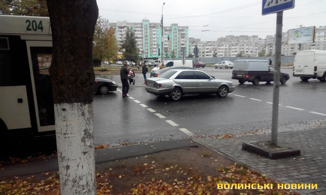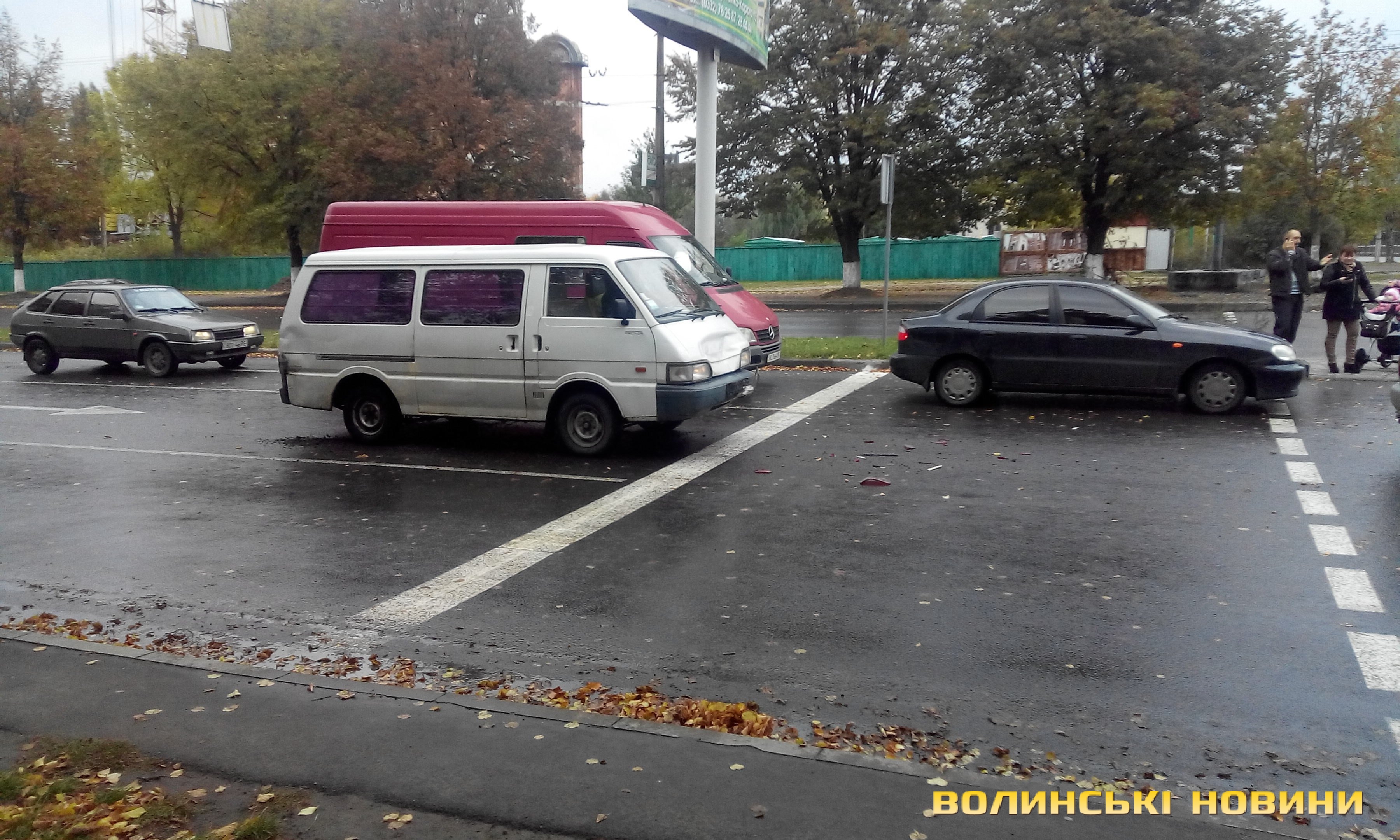 Мікроавтобус зіткнувся з легковиком поблизу пішохідного переходу у Луцьку.