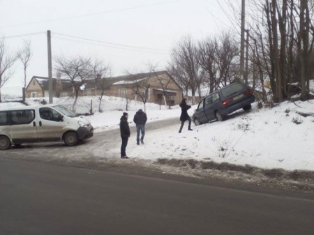 «Пассат» боком винесло, ліве заднє крило має сліди удару, аналогічні сліди на бусові», - йдеться у дописі.