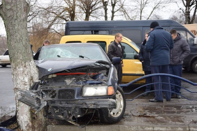 Водій «БМВ» не впорався з керуванням і вилетів на зустрічну смугу. Відтак, - машину занесло і «викинуло» у дерево. На щастя, обійшлося без жертв. Водій БМВ отримав травми обличчя. Проте, останній відмовився від ПМД.